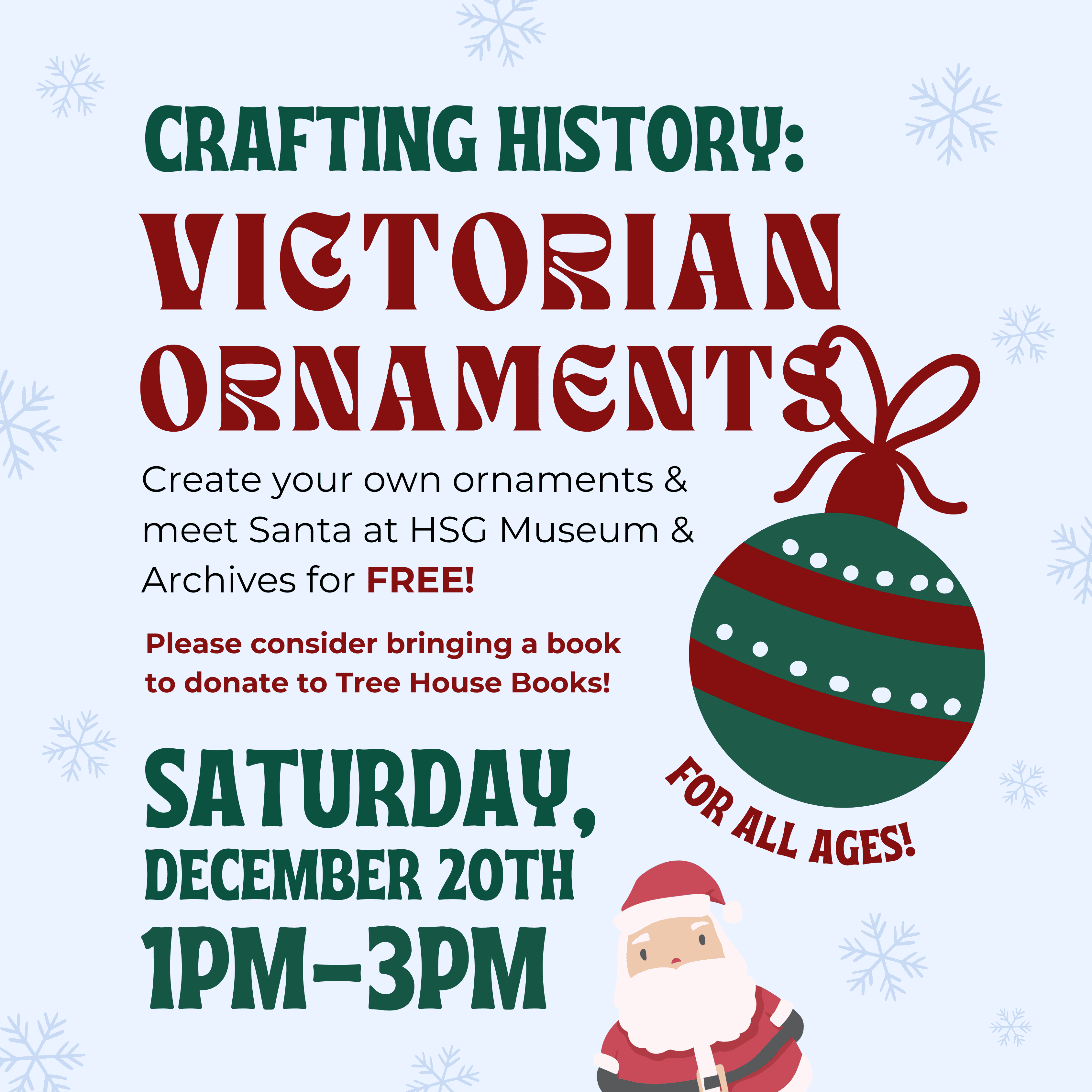 Next craft: Make Victorian ornaments, holiday cards, wax seals and meet Santa on December 20th from 1-3 PM!